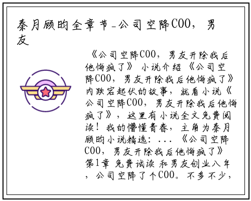 《公司空降COO,男友开除我后他悔疯了》内跌宕起伏的故事,就看小说《公司空降COO,男友开除我后他悔疯了》,这里有小说全文免费阅读!我的懵懂青春,主角为秦月顾昀小说精选:...